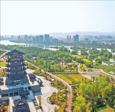 近年来,陕西省汉中市以建设生态宜居城市为目标,天汉湿地公园通过生态修复和综合治理,荒滩变公园,江畔成风景,成为市民休闲娱乐的好去处。图为6月16日拍摄的天汉湿地公园,目之所及,林木青翠、远山如黛,风景秀美。